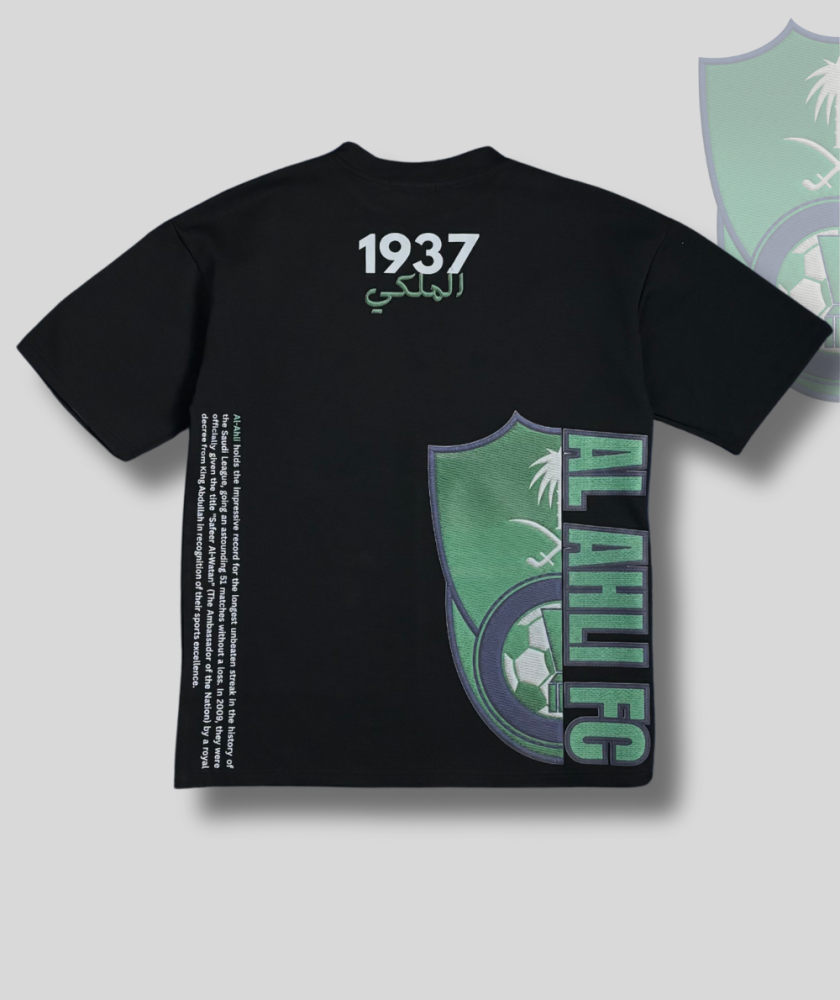 أظهر فخرك بـ النادي الملكي – الأهلي مع هذا التيشيرت الأوفر سايز المميز. يحمل سنة التأسيس 1937 ولقب الملكي ليعبر عن تاريخ واحد من أعرق أندية السعودية. مثالي للمشجعين الأوفياء أو للبس الكاجوال اليومي.