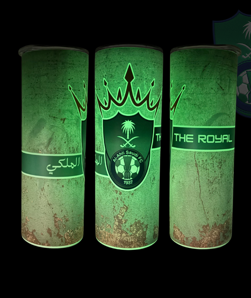 Celebrate your love for Al Ahli – The Royal with this premium 20 Oz tumbler. Designed with the official crest, crown, and bold details, this tumbler glows in the dark, making it a perfect companion for both day and night. Stay refreshed in true royal green spirit while supporting your team everywhere you go.