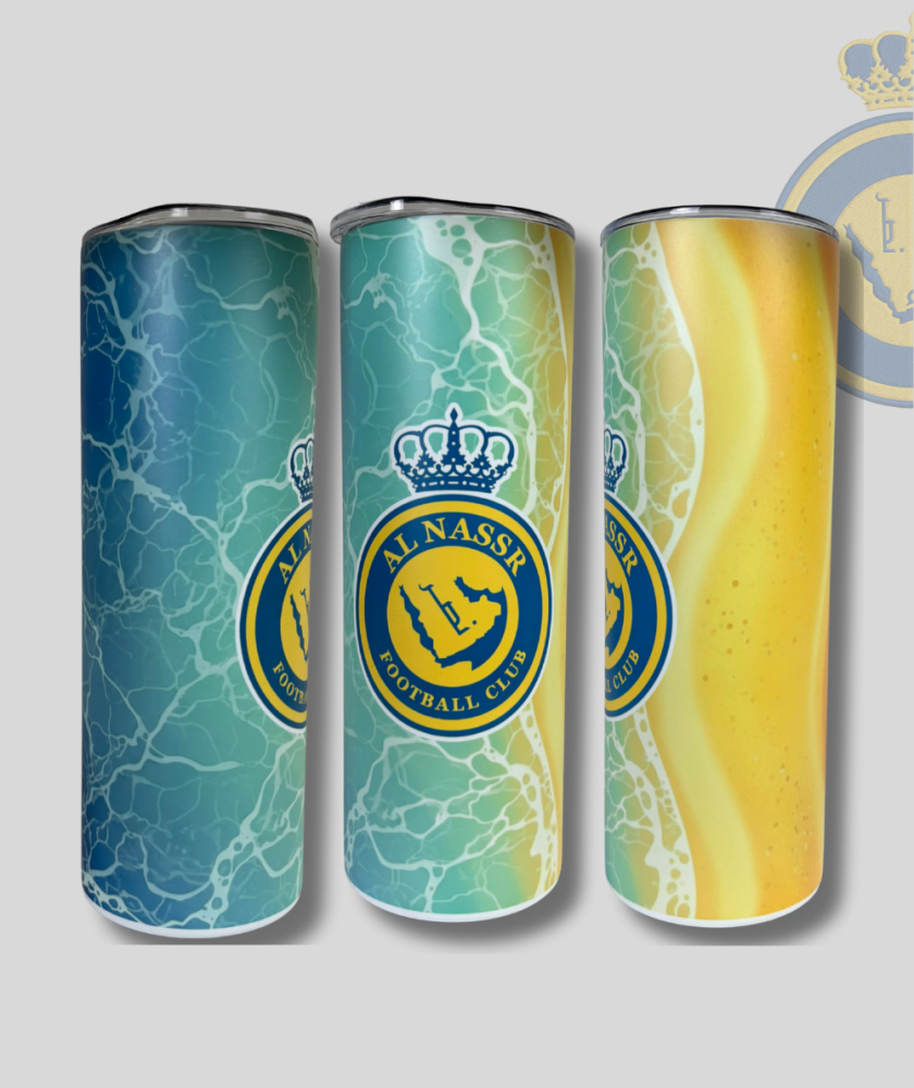 Crafted with premium quality, this tumbler is perfect for keeping your drinks hot or cold while showing off your team pride. A must-have for every Al Nassr fan looking to support their club in style.