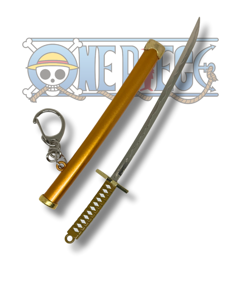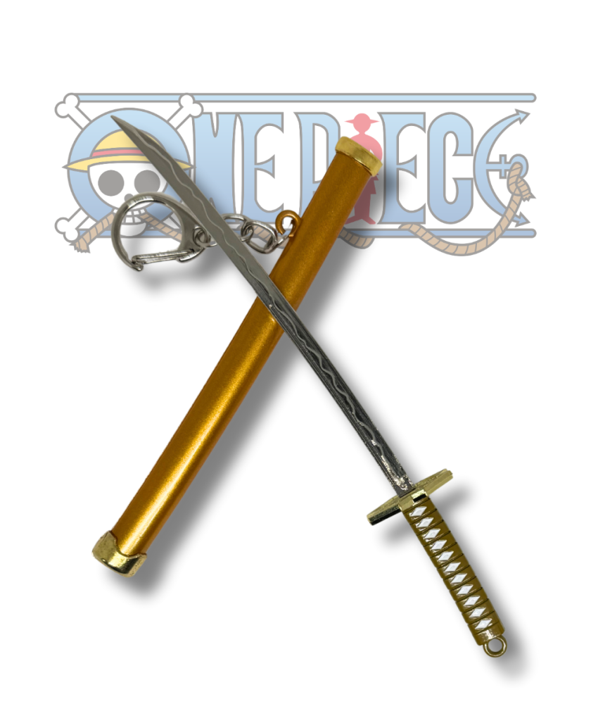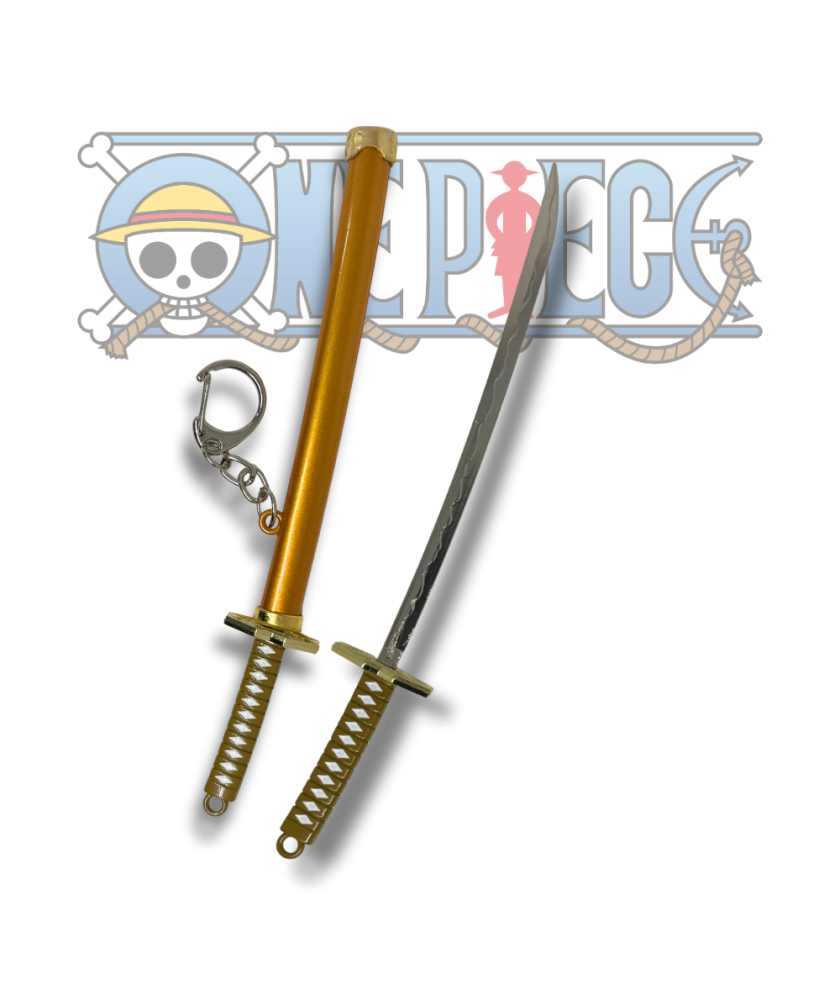 Carry the spirit of the swordsman with this Mini Zoro Sword Keychain, inspired by the legendary swords of Roronoa Zoro – part of Collection One of One Piece. This metallic mini katana features a detailed blade, glossy golden sheath, and a sturdy keyring, making it the perfect collectible or gift for any One Piece fan.